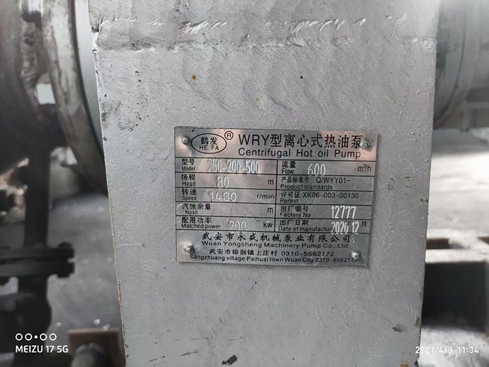 2021年4月9日,河北石家莊客戶的200kw熱油泵3臺(tái),調(diào)試完畢,兩用一備并聯(lián),綜合流量1300立方米每小時(shí)。