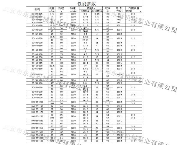 高溫熱油泵性能參數(shù)